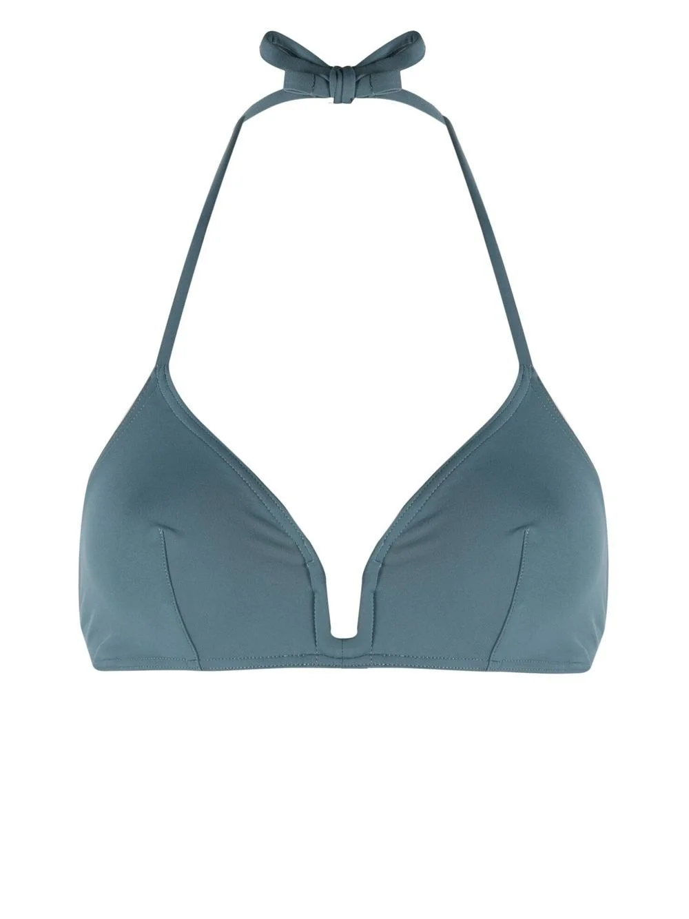 triangle-cup bikini top Inspired by the brand's French roots, ERES is known for creating effortlessly sophisticated designs. Seen on this AW22 collection bikini top, a sleek spaghetti-strap halterneck silhouette is met with a monochromatic colourway, which ties in with minimalist trends. Made in France Composition Polyamide 77%, Elastane 23% Washing instructions Machine Wash