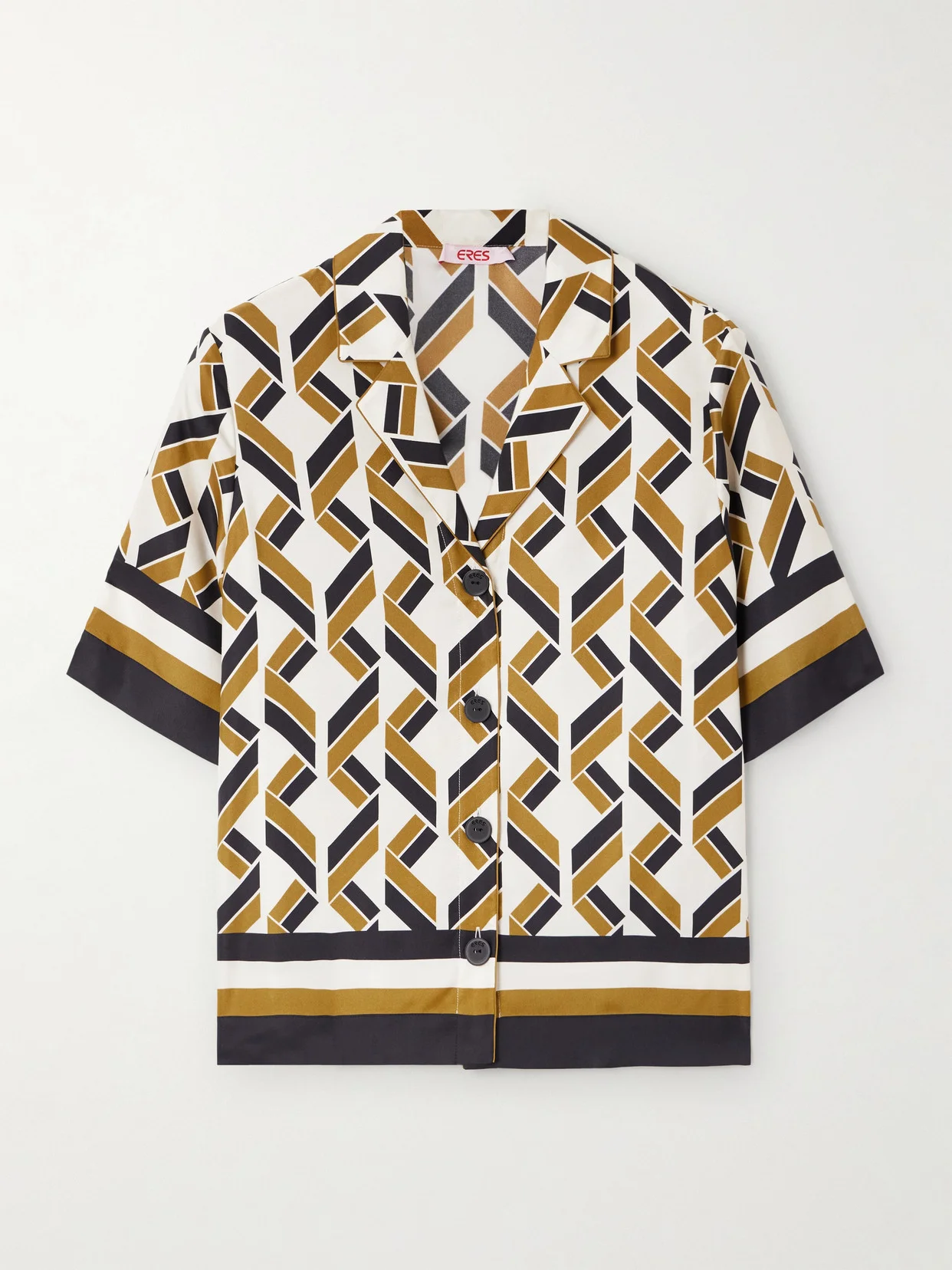 The geometric 'Swim' print on Eres' 'Sonore' shirt is inspired by "the sunny and velvety look of 1970s interiors". It's cut from smooth silk-twill and has a relaxed fit. You'll find the coordinating 'Tube' pants in our edit.