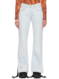 Bootcut non-stretch denim jeans. Subtle distressing throughout. · Frayed edge at waistband · Belt loops · Five-pocket styling · Zip-fly · Logo embroidered at cuff · Vented outseams · Logo printed at back waistband · Logo flag at back pocket · Logo-engraved silver-tone hardware · Contrast stitching in yellow Part of the ERL x Levi's collaboration. Supplier color: Blue 100% cotton. Made in Turkey 241260F069002