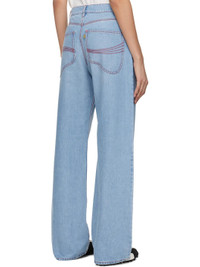 Non-stretch denim jeans. · Belt loops · Five-pocket styling · Zip fly · Logo flag at back pocket · Logo-engraved silver-tone hardware · Contrast stitching in red Supplier color: Blue 100% cotton. Made in Italy 252260F069000