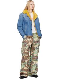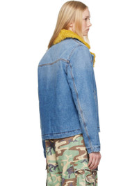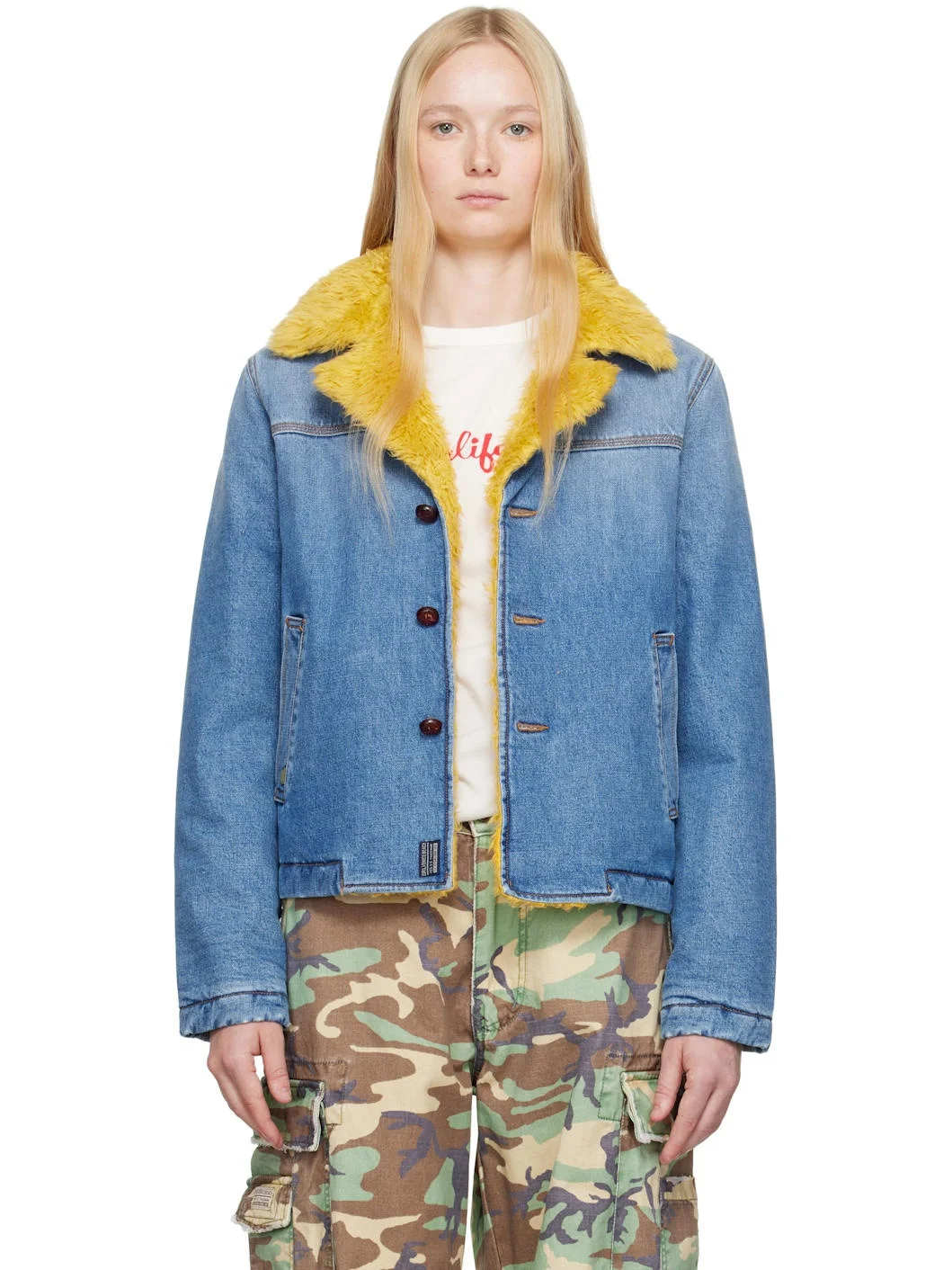 Padded non-stretch denim jacket. Fading throughout. · Faux-shearling trim at notched lapel · Button closure · Welt pockets · Full quilted twill lining · Contrast stitching in tan Supplier color: Blue Body: 100% cotton. Trim: 80% acetate, 20% polyester. Lining: 65% polyester, 35% cotton. Made in Italy 252260F060000