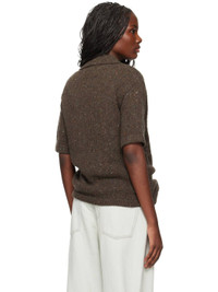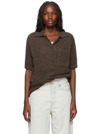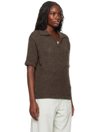 Knit wool-blend polo. · Rib-knit spread collar, hem, and cuffs · Open placket · Patch pocket at chest · Dropped shoulders Supplier color: Dark brown 60% wool, 20% viscose, 20% polyamide. Made in Italy 242260F108000