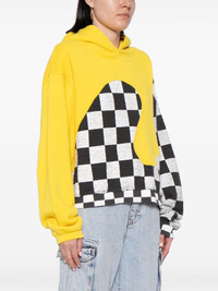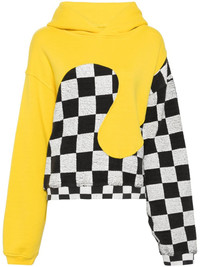 check-pattern panelled cotton hoodie Highlights - Canary yellow/white/black - Cotton - French terry/jersey texture - Swirl paneling - Check pattern - Cracked effect - Classic hood - Drop shoulder - Long sleeves - Ribbed cuffs - Ribbed hem Imported Composition Cotton 100% SIZE & FIT Model measurements Height 5 ft 9 in(1.76 m) Bust/Chest 29.13 in(74 cm) Hips 33.07 in(84 cm) Waist 22.83 in(58 cm) FittingInformation Designed to be unstructured, offering a loose fit throughout Made from a midweight non-stretch fabric, this piece offers minimal elasticity when worn This piece fits true to size – take your usual size