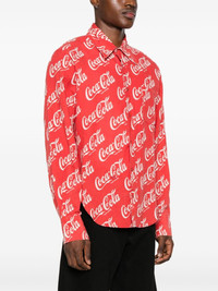 x Coca-Cola print shirt Highlights - Red/white - Linen-cotton blend - All-over coca-cola print - Oversized pointed collar - Chest patch pocket - Long sleeves - Press-stud fastening cuffs - Embroidered logo to the front - Curved hem - Front press-stud fastening - When buying this unisex item, keep in mind that it is graded in standard men's sizing. Imported Composition Linen/Flax 50%, Cotton 50% SIZE & FIT Model measurements Height 6 ft 2 in(1.89 m) Bust/Chest 39.76 in(101 cm) Hips 37.4 in(95 cm) Waist 29.92 in(76 cm) Measurement CHEST 43.3 in(110 cm) LENGTH 29.52 in(75 cm) WAIST 39.37 in(100 cm) SLEEVE LENGTH 26.77 in(68 cm) Shoulder Width 17.71 in(45 cm) FittingInformation Designed to be unstructured, offering a loose fit throughout Made from a midweight non-stretch fabric This piece fits true to size – take your usual size