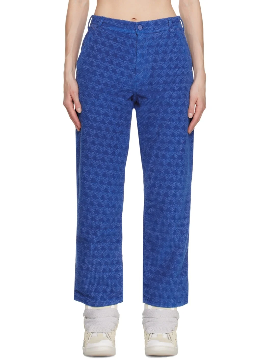 Garment-dyed insulated cotton corduroy trousers. Logo pattern printed throughout. · Belt loops · Three-pocket styling · Zip-fly · Full cotton twill lining · Logo-engraved antiqued gold-tone hardware Supplier color: Blue Body: 100% cotton. Fill: 100% polyester. Lining: 100% cotton. Made in Italy 222260F069001