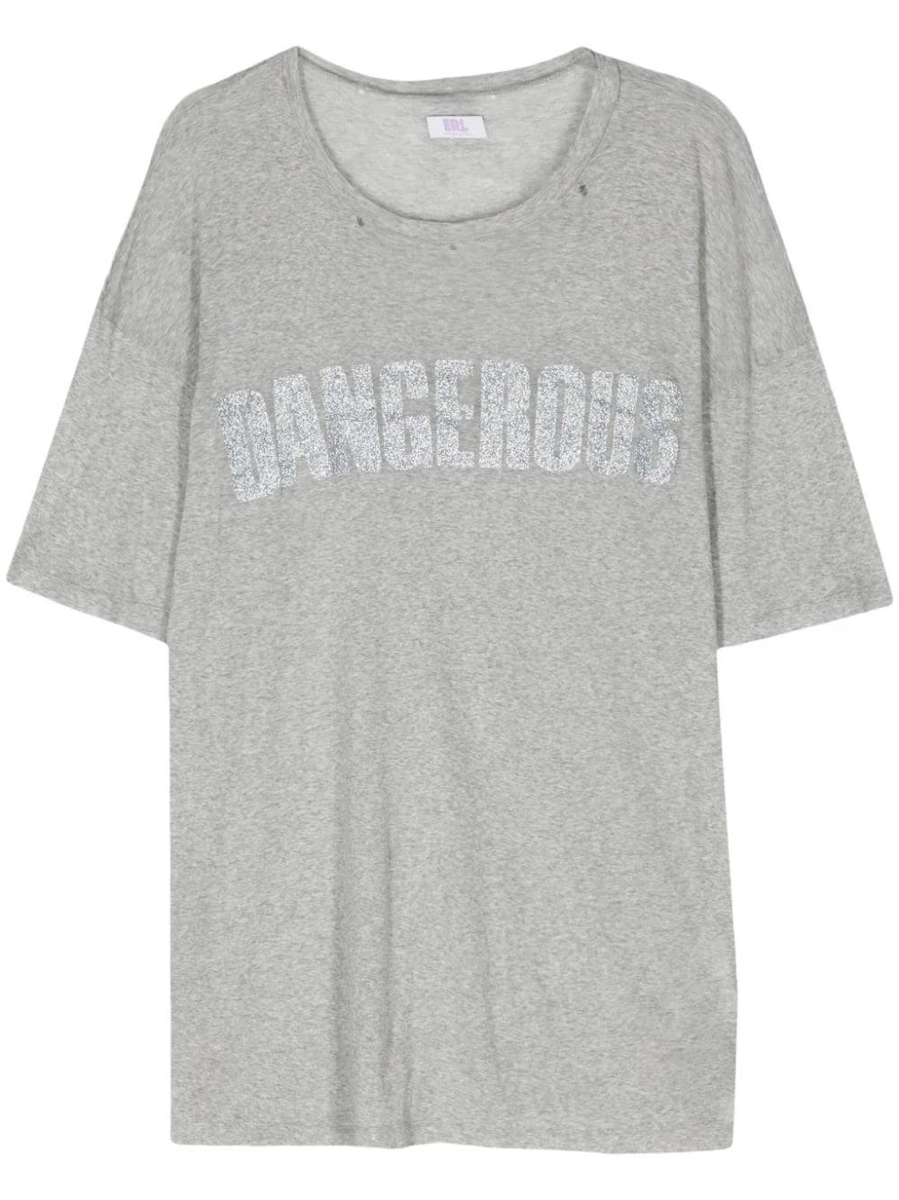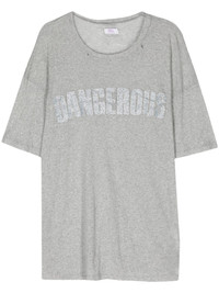 Dangerous cotton T-shirt Highlights - Heather grey - Cotton - Jersey texture - Glitter text print - Wide neck - Drop shoulder - Short sleeves - Straight hem - When buying this unisex item, keep in mind that it is graded in standard men's sizing. Imported Composition Cotton 100%