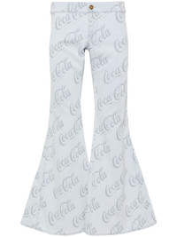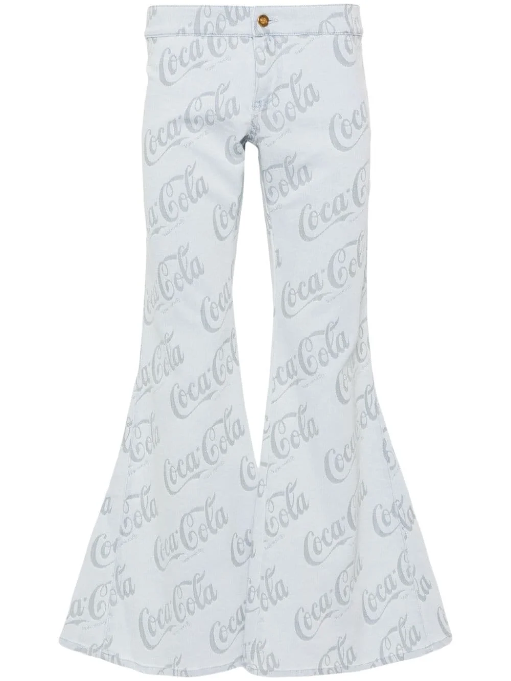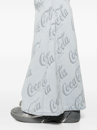x Coca-Cola jacquard flared jeans Highlights - Cool grey - Cotton blend - Denim - Patterned jacquard - Front button and zip fastening - Flared - No pockets - Straight hem - When buying this unisex item, keep in mind that it is graded in standard men's sizing. Imported Composition Cotton 52%, Polyester 46%, Elastane 2% SIZE & FIT Model measurements Height 5 ft 10 in(1.78 m) Bust/Chest 33.07 in(84 cm) Hips 36.61 in(93 cm) Waist 24.8 in(63 cm) FittingInformation Constructed from stretch denim, this piece offers a stretch fit with durability
