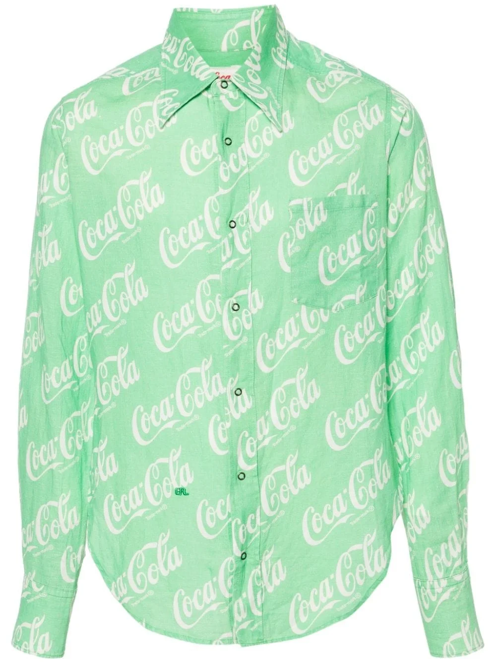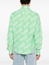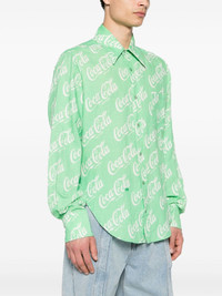 x Coca-Cola monogram-print shirt Highlights - Green/white - Linen-cotton blend - Monogram print - Embroidered logo to the front - Box-pleat detail - Classic collar - Front press-stud fastening - Long sleeves with press-stud fastening cuffs - Chest patch pocket - Curved hem - When buying this unisex item, keep in mind that it is graded in standard men's sizing. Imported Composition Linen/Flax 50%, Cotton 50% SIZE & FIT Model measurements Height 5 ft 10 in(1.77 m) Bust/Chest 32.28 in(82 cm) Hips 35.03 in(89 cm) Waist 25.19 in(64 cm) Measurement CHEST 44.09 in(112 cm) LENGTH 29.52 in(75 cm) Shoulder Width 18.11 in(46 cm) SLEEVE LENGTH 26.77 in(68 cm) WAIST 39.37 in(100 cm) FittingInformation This unisex piece is designed for a loose fit whether you usually select women's or men's sizes Made from a midweight non-stretch fabric