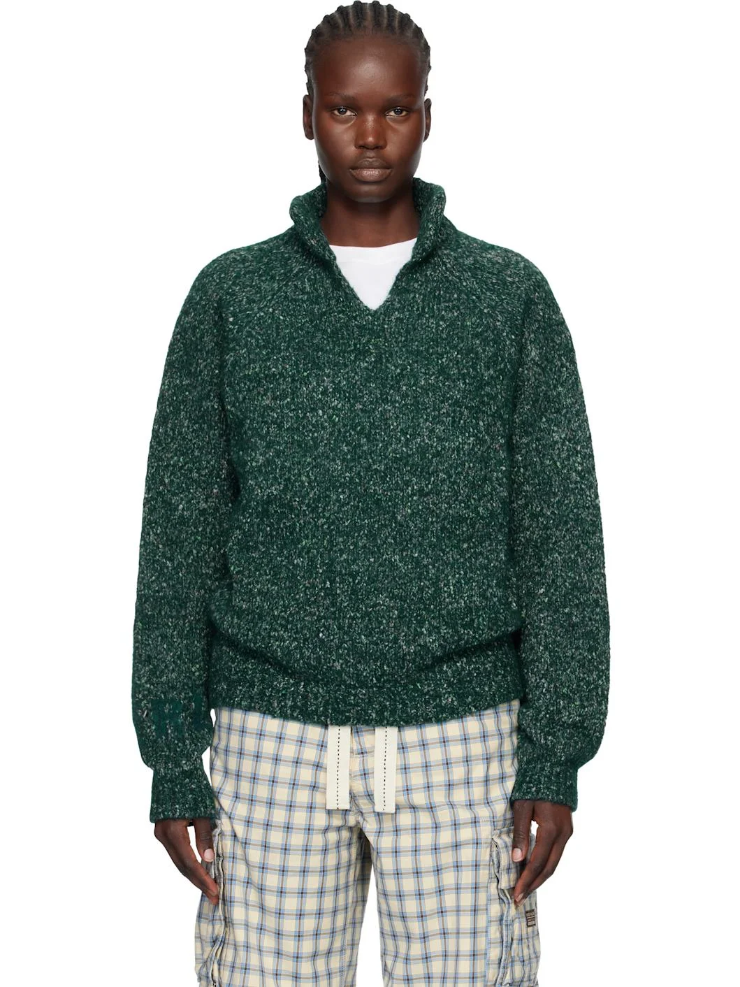 Knit alpaca-blend polo. · Stand collar · Rib-knit hem and cuffs · Raglan sleeves · Intarsia logo at sleeve Supplier color: Dark green 42% alpaca, 19% wool, 19% cotton, 10% polyester. Made in Italy 261260F108002