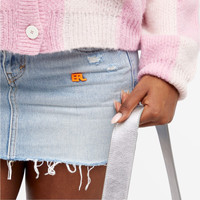 Using light wash distressed denim with fading this Levi’s and ERL collection has shared roots in the Golden State. Looking like a cut pair of light, washed out indigo 5-pocket jeans, this mini skirt has your smart casual looks in mind. With an array of pockets that are as practical as they are stylish, both brand’s label’s are embroidered on the front. - 100% Cotton - Zip & Button Fly - 5 Pocket Detailing - Embroidered Branding