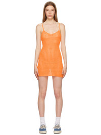 Semi-sheer crocheted polyester- and nylon-blend dress. Metallic thread detailing throughout. · Scoop neck · Scalloped edge at hem Supplier color: Orange 67% polyester, 17% metallized polyester, 16% polyamide. Made in Italy 231260F052003