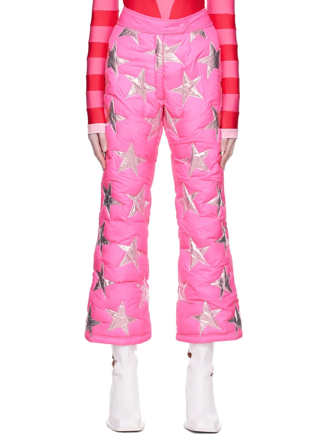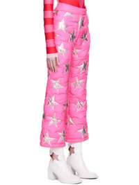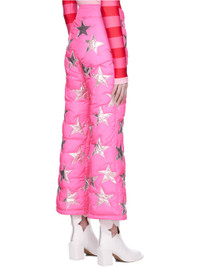 Padded polyester taffeta trousers. Graphic appliques throughout. · Zip-fly · Inset elasticized cuffs · Full cotton canvas lining Supplier color: Pink Body: 100% polyester. Trim: 87% polypropylene, 13% polyurethane. Fill: 100% polyester. Lining: 100% cotton. Made in Turkey 222260F087000