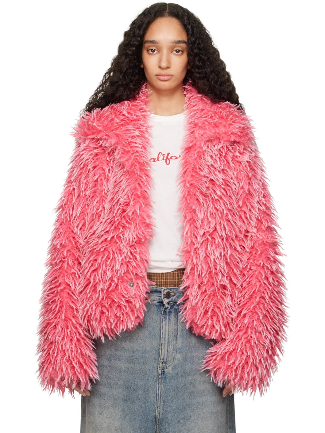 Faux-fur jacket. · Spread collar · Press-stud closure · Seam pockets · Quilted satin lining Supplier color: Pink Body: 100% polyester. Lining: 70% acetate, 30% cupro. Made in Italy 252260F063000