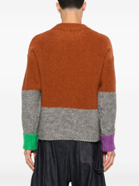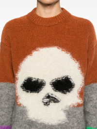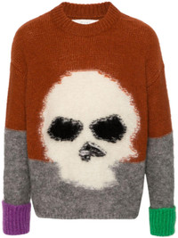 auburn brown/multicolour knitted construction brushed effect colour-block design intarsia-knit skull crew neck drop shoulder long sleeves ribbed cuffs and hem straight hem When buying this unisex item, keep in mind that it is graded in standard men's sizing. Size & Fit Model Measurements: Height: 1.78 m Bust/Chest: 80.0 cm Hips: 92.0 cm Waist: 61.0 cm Model wears size M Fabric and Care Designer Style ID: ERL09N004 Designer Colour: BROWN/MUKTICOLOR Composition: Elastane 1%, Acrylic 26%, Polyamide 27%, Wool 5%, Alpaca 5%, Mohair 36% Washing instructions: Hand Wash Made in Italy