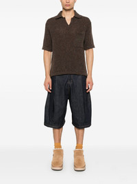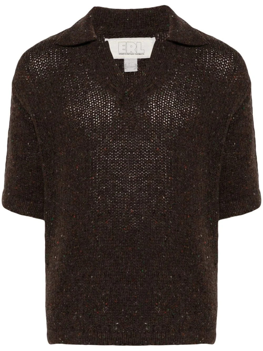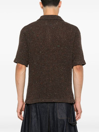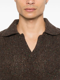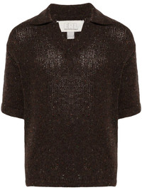 speckle-knit polo sweater Highlights - Chocolate brown - Wool blend - Speckle knit - V-neck - Polo collar - Short sleeves - Ribbed cuffs and hem - Chest patch pocket - Straight hem - When buying this unisex item, keep in mind that it is graded in standard men's sizing. Made in Italy Composition Wool 60%, Viscose 20%, Polyamide 20% SIZE & FIT Model measurements Height 5 ft 10 in(1.78 m) Bust/Chest 32.67 in(83 cm) Hips 35.43 in(90 cm) Waist 23.22 in(59 cm) FittingInformation This unisex piece is designed for a relaxed fit whether you usually select women's or men's sizes Made with a midweight knit, this piece offers some stretch