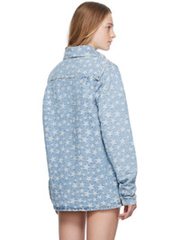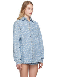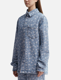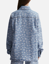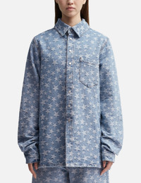 - ERL - Unisex Denim Jacquard Overshirt - Heavyweight cotton denim exterior - Snap button closure - Chest pocket - Side hem slits - Unlined - Color: Light Blue - Material: 100% Cotton - See more Shirts and Clothing SIZING Men - Model wears size M - Model measures: Height 189cm, Chest 32”/81cm, Waist 27”/69cm, Hip 35.5”/90cm - Model wears size XS - Model measures: Height 175cm, Chest 33”/83.8cm, Waist 23”/58.4cm,Hip 34”86.4cm
