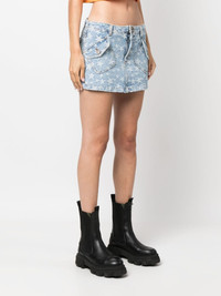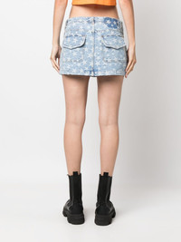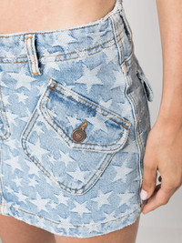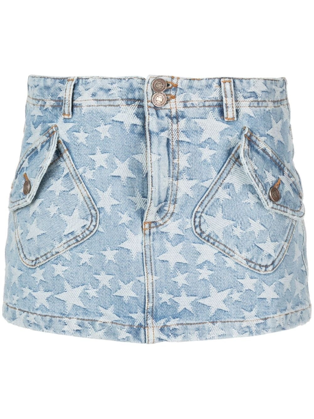 star-print washed-denim mini skirt Highlights - Light blue - Cotton - Washed denim - Star print - Belt loops - Front button and zip fastening - Two side button-fastening pockets - Two rear flap pockets - Straight hem - Thigh-length Composition Cotton 100% SIZE & FIT Model measurements Height 5 ft 10 in(1.78 m) Bust/Chest 33.9 in(86 cm) Hips 35.8 in(91 cm) Waist 22.4 in(57 cm) FittingInformation This mini-length skirt is intended to be worn low on the hips Slightly short in length; consider your own measurements Sturdy and hard-wearing, this denim piece offers no stretch This piece fits true to size – take your usual size