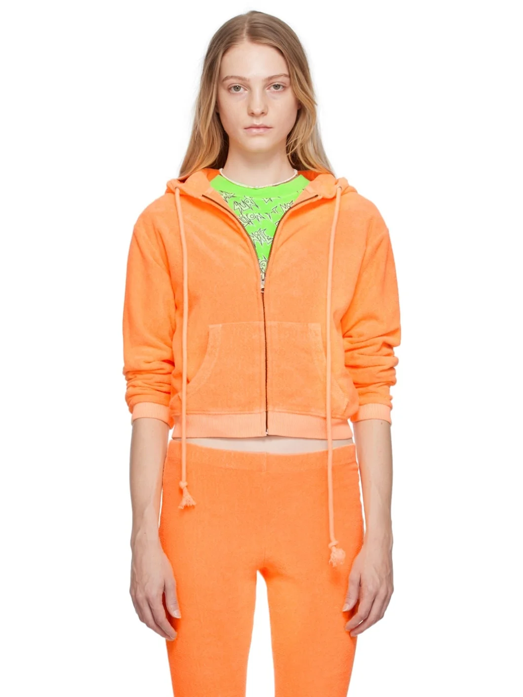 Cotton-blend terrycloth hoodie. · Drawstring at hood · Zip closure · Patch pockets · Rib knit hem and cuffs · Logo-engraved bronze-tone hardware Supplier color: Orange 90% cotton, 10% polyester. Made in Turkey 232260F097002