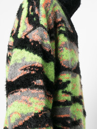 tiger-print knit jumper Highlights - Lime green/black - Wool-mohair blend - Full jacquard - Tiger print - Roll neck - Half front zip fastening - Long sleeves - Straight hem Made in Italy Composition Outer: Recycled Polyamide 41%, Mohair 23%, Polyamide 19%, Wool 6%, Acrylic 2% SIZE & FIT Model measurements Height 6 ft 2 in(1.87 m) Bust/Chest 35.82 in(91 cm) Hips 35.43 in(90 cm) Waist 27.95 in(71 cm) Measurement CHEST 50.39 in(128 cm) SLEEVE LENGTH 24.01 in(61 cm) LENGTH 23.22 in(59 cm) FittingInformation Designed to be unstructured, offering a loose fit throughout Made from a midweight non-stretch fabric, this piece offers minimal elasticity when worn This piece fits true to size – take your usual size Washing instructions Hand Wash