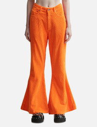 - ERL - Unisex Corduroy Flared Pants - Low rise - Zip fly with button closure - Five-pocket design - Woven cotton corduroy outer - Flared - Slightly padded - Cotton lining - Color: Orange - Material: 97% Cotton, 3% Elastane; Lining: 100% Cotton; Padding: 100% Polyester - See more Pants and Clothing SIZING Men - Model wears size L - Model measures: Height 187cm, Chest 36"/91cm, Waist 29"/74cm, Hip 37"/94cm - Model wears size S - Model measures: Height 175cm, Chest 31"/79cm, Waist 24"/62cm, Hip 35’’/89cm