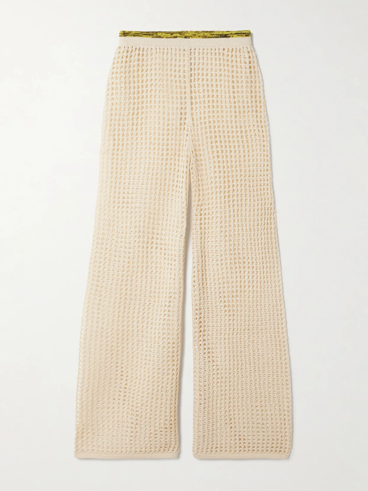 Atuq Fringed Open-knit Cotton Wide-leg Pants