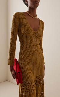 Founded in 2013 by sisters Chiara and Giuliana Macchiavello, ESCVDO is inspired by and dedicated to the duo’s Peruvian heritage, focusing on ancestral weaving techniques with a modern take and ethical approach. Handcrafted in Peru, the 'Reflejo' dress is made in the Del Norte stitch, an innovative crochet stitch that changes thickness throughout the dress to create a complex texture that captures light and movement in a very unique way. Its cotton is locally sourced from the coastal region of Pisco, Peru and adheres to the highest fair-trade standards. PRODUCT DETAILS - Resort '26 - Slip on - Composition: 100% OEKO-TEX Standard 100 and GOTS Pima cotton - Dry clean - Made in Peru