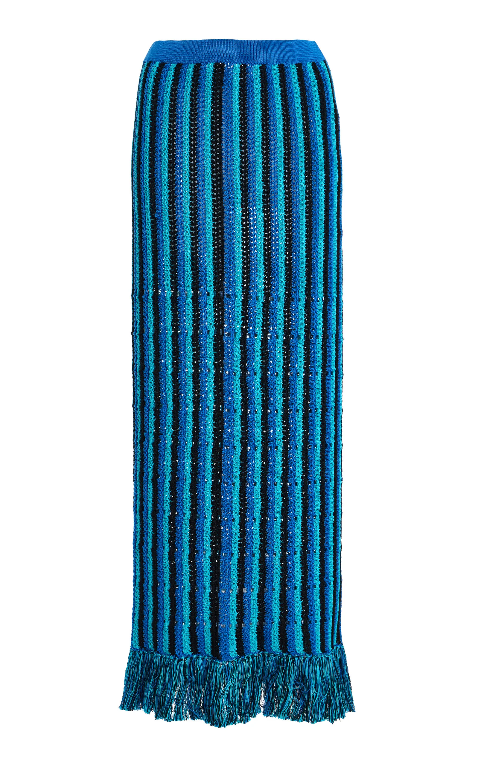 Misti Fringed Crocheted Cotton Midi Skirt blue
