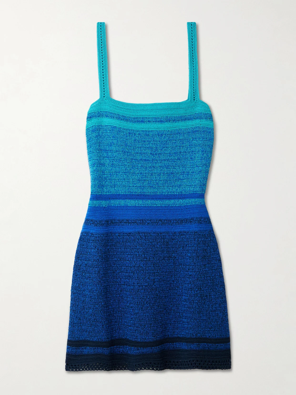 ESCVDO's collections beautifully echo the colorful landscape of its native Peru. This 'Plumar' dress is hand crocheted from cotton with a squared neckline and has a beautiful ombre effect that deepens into the swishy mini skirt.