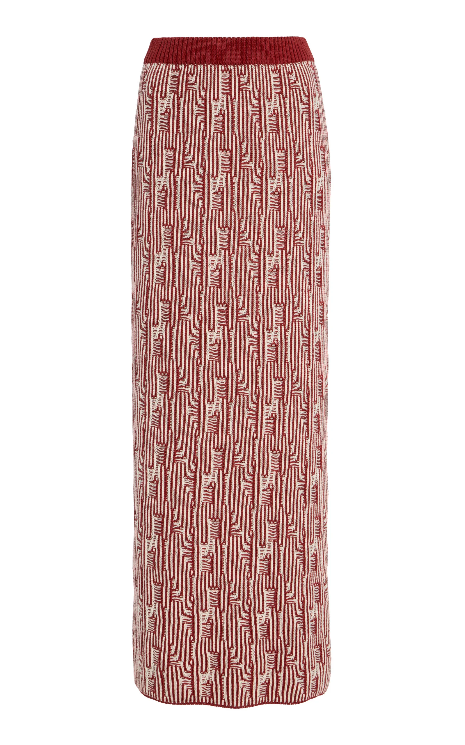Founded in 2013 by sisters Chiara and Giuliana Macchiavello, ESCVDO is inspired by and dedicated to the duo’s Peruvian heritage, focusing on ancestral weaving techniques with a modern take and ethical approach. Handcrafted in Peru, the 'Tayta' skirt has a fitted silhouette knit from a cotton jacquard with a ribbed elastic waist. Wear yours with the matching top. PRODUCT DETAILS - Fall '25 - Slip on - Composition: 100% cotton - Dry clean - Handmade in Peru SIZE & FIT - Our model is wearing a size Small - Model is 5’10” with a 30” bust, 24” waist, and 34” hip