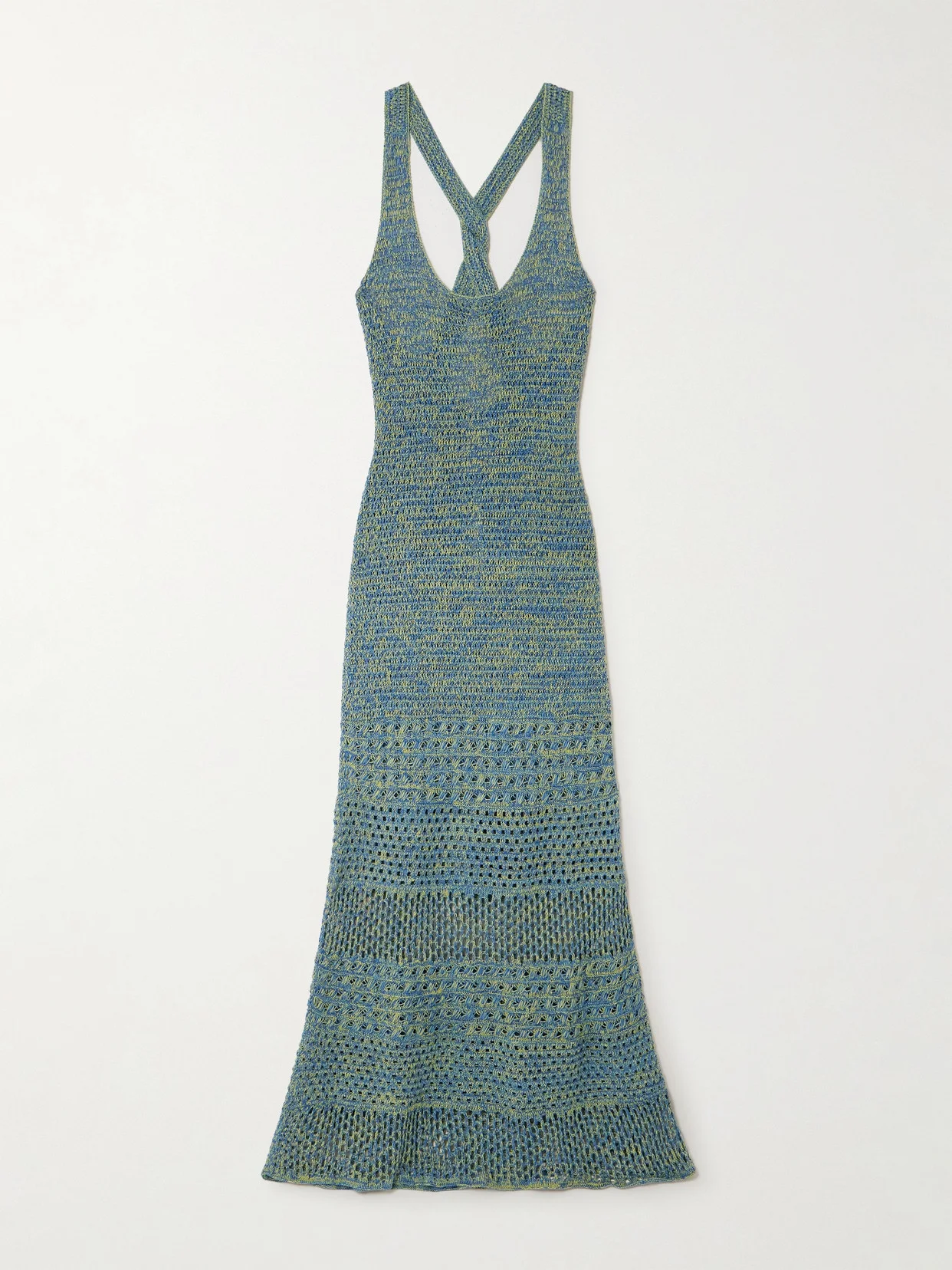 Twist-back Pointelle-knit Cotton Maxi Dress