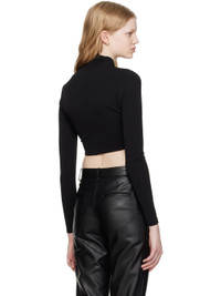 Lightweight and breathable viscose-blend jersey T-shirt. Gathering throughout. · Wrap construction · Mock neck · Concealed zip closure at back Supplier color: Black 72% viscose, 28% polyester. Made in Australia 231475F110005