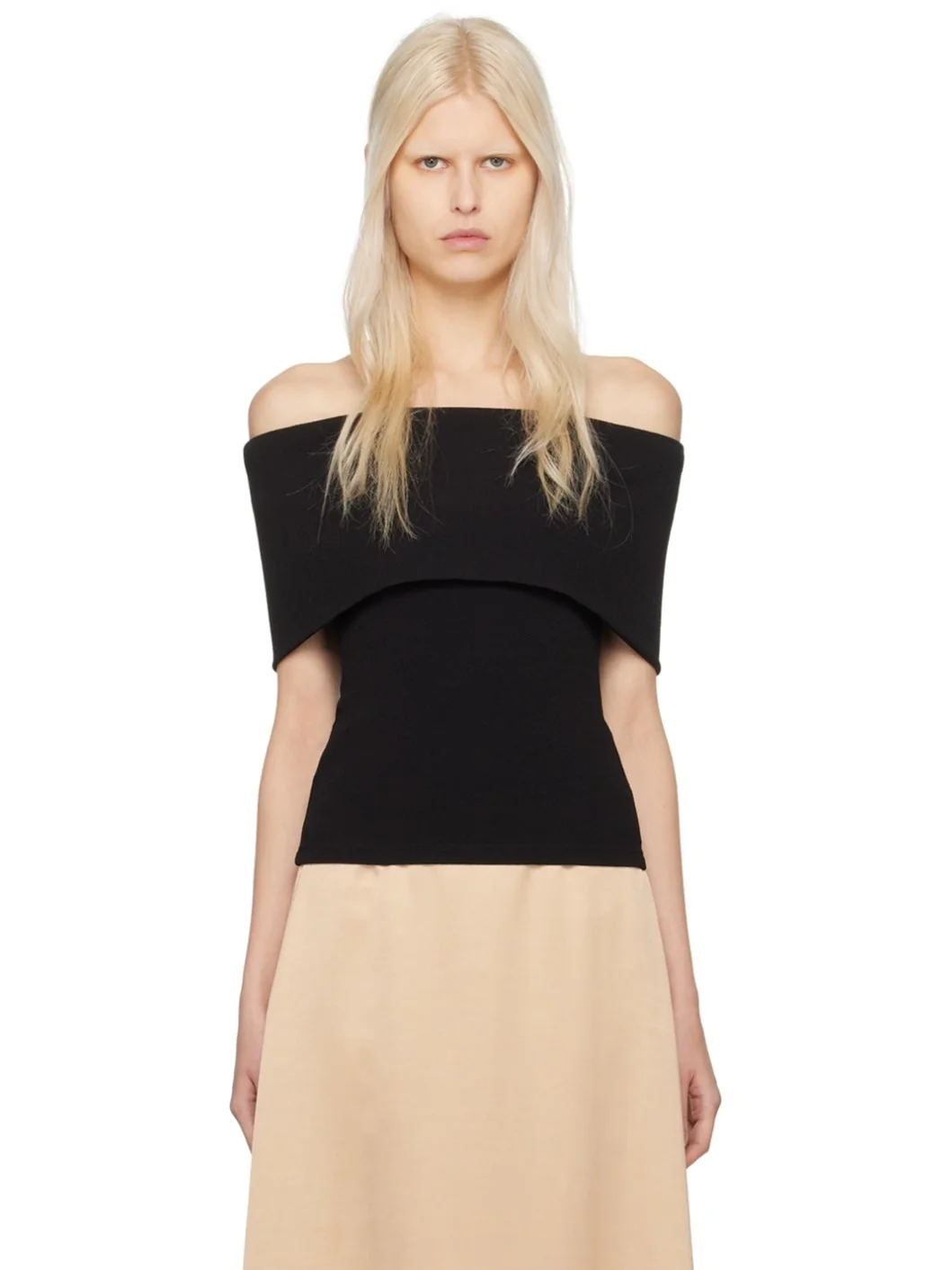 FSC-certified stretch viscose- and nylon-blend crepe blouse. · Off-the-shoulder construction · Concealed zip closure at side seam Supplier color: Black 77% viscose, 14% nylon, 9% elastane. Made in Australia 241475F107000