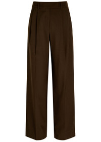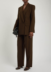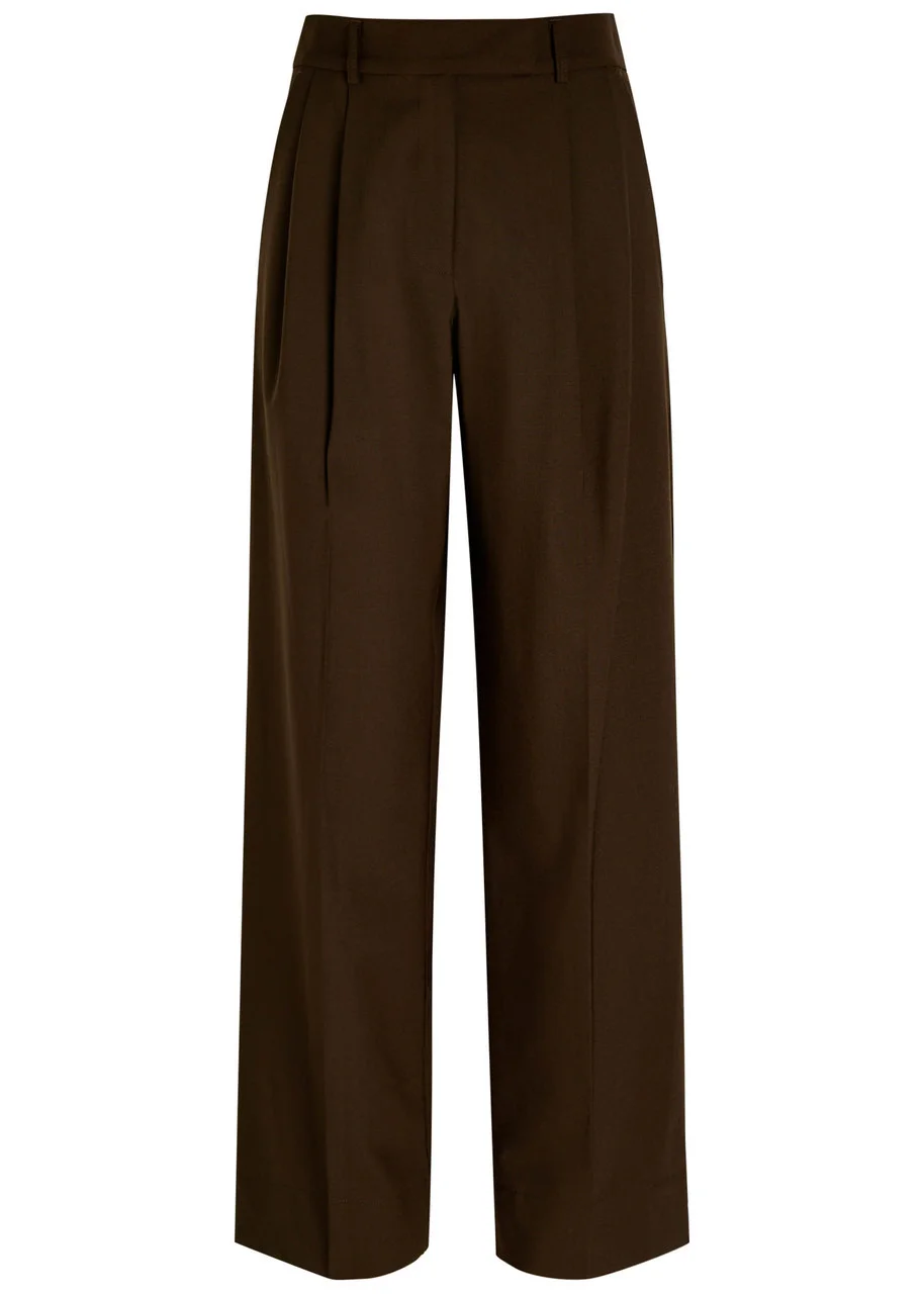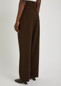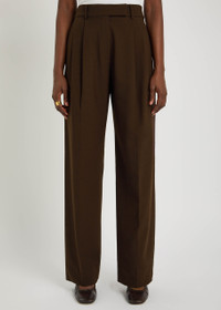 Info & Care Esse Studios woven;trousers Belt loops, pleats at waist, side slip pockets, pressed crease through legs, back slit pockets; Concealed hook,;button and zip fastening at front 53% polyester, 43% virgin wool, 4% elastane Dry clean Coordinating items available Size & Fit Inside leg length: 32 inches/ 81.5cm Midweight Straight-leg cut Model is 5'9"/ 175cm and wears a size;UK8