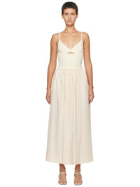 Cotton poplin and FSC-certified stretch viscose-blend jersey dress. · Paneled construction · V-neck · Darts at cups · Cutout at chest · Gathering at waist · Fixed shoulder straps · Zip closure at back · Partial jersey lining Supplier color: Crema Body 1: 100% cotton. Body 2: 68% viscose, 26% nylon, 6% elastane. Made in Australia 241475F055004