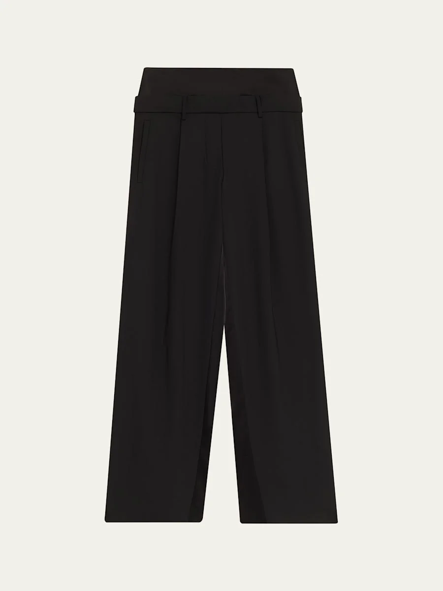 The "Portia" wool-blend trousers by ESSE Studios can take your look from office to night out with a duo waistband that is sure to make a statement. Approx. 14.5" rise; 33" inseam; 47" outseam High rise Pleated front Four-pocket style Wide legs Full length Center back zip Wool/acetate Lining: Acetate Dry clean Made in Australia Online Inquiries: BGS21_T6VY0| Store Inquiries: #5046764