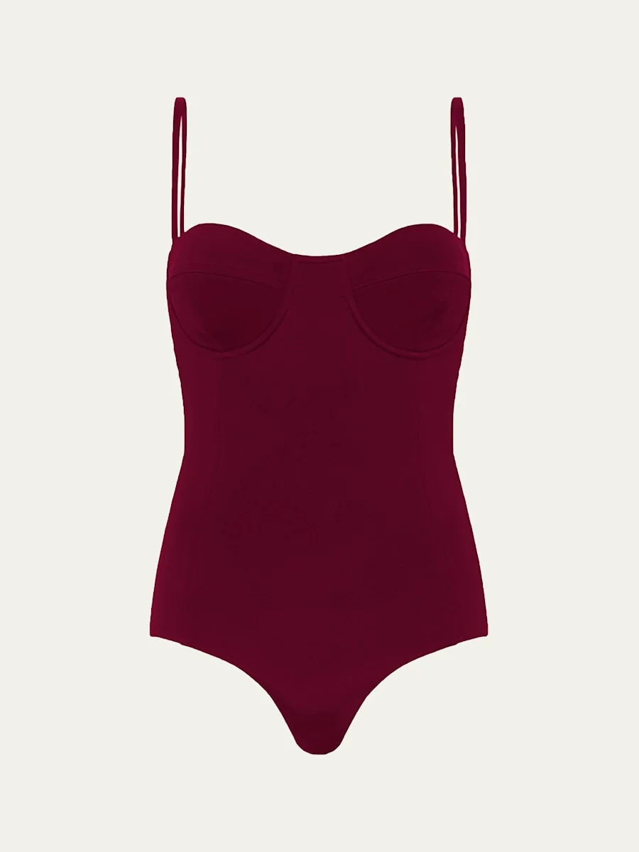 Cut from signature heavyweight crepe, this ESSE Studios bodysuit blends sculptural detailing and comfort for a sleek silhouette. Sweetheart neckline; underwire cups Sleeveless Slim fit Center back zip Viscose Dry clean Made in Australia Online Inquiries: BGS21_T8SEN| Store Inquiries: #5405255