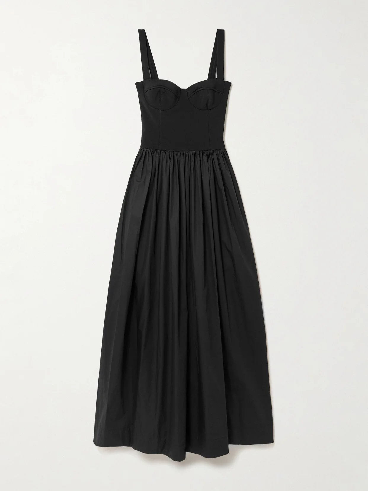 Stretch-knit And Organic Cotton-poplin Bustier Maxi Dress