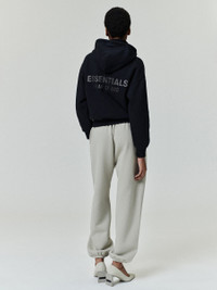 The Womens Classic Zip-Up Hoodie is crafted from 380gsm core fleece, which offers both body and structure to a relaxed silhouette with a cropped length. A new beveled metallic "Essentials Fear of God" logo is prominently displayed on the back. Additional details include a full zip front, kangaroo pockets, rib-knit cuffs and waist hem. A Fear of God Essentials rubberized label is stitched onto the hood and sleeve. DETAILS - 80% cotton / 20% polyester fleece, 380GSM - MODEL IS 5'10" AND WEARS SIZE SMALL IN JET BLACK - Womens Essentials fit - relaxed, cropped fit - "Essentials Fear of God" beveled metallic logo - Overlapped neckline hoodie - Rib-knit cuffs, waist hem - Full zip front - "Fear of God Essentials" translucent rubberized label - Imported