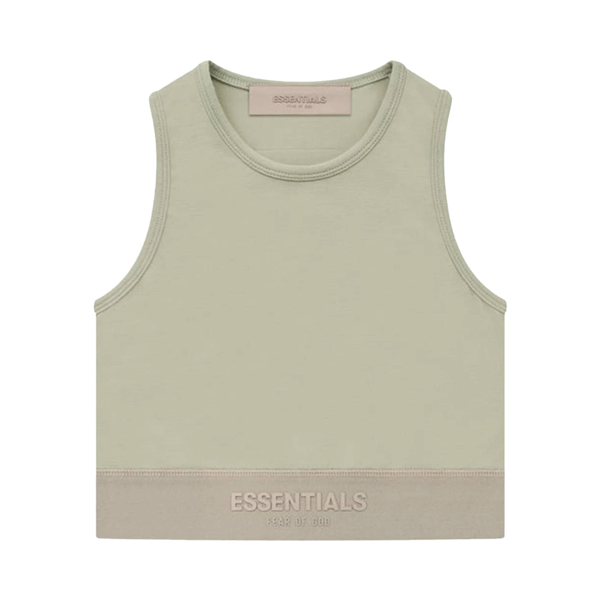 This Fear of God Essentials tank top is defined by a cropped length. From the brand's SS22 collection, the sleeveless silhouette is made from stretchy cotton in sand green and features the label's logo along the waistband.