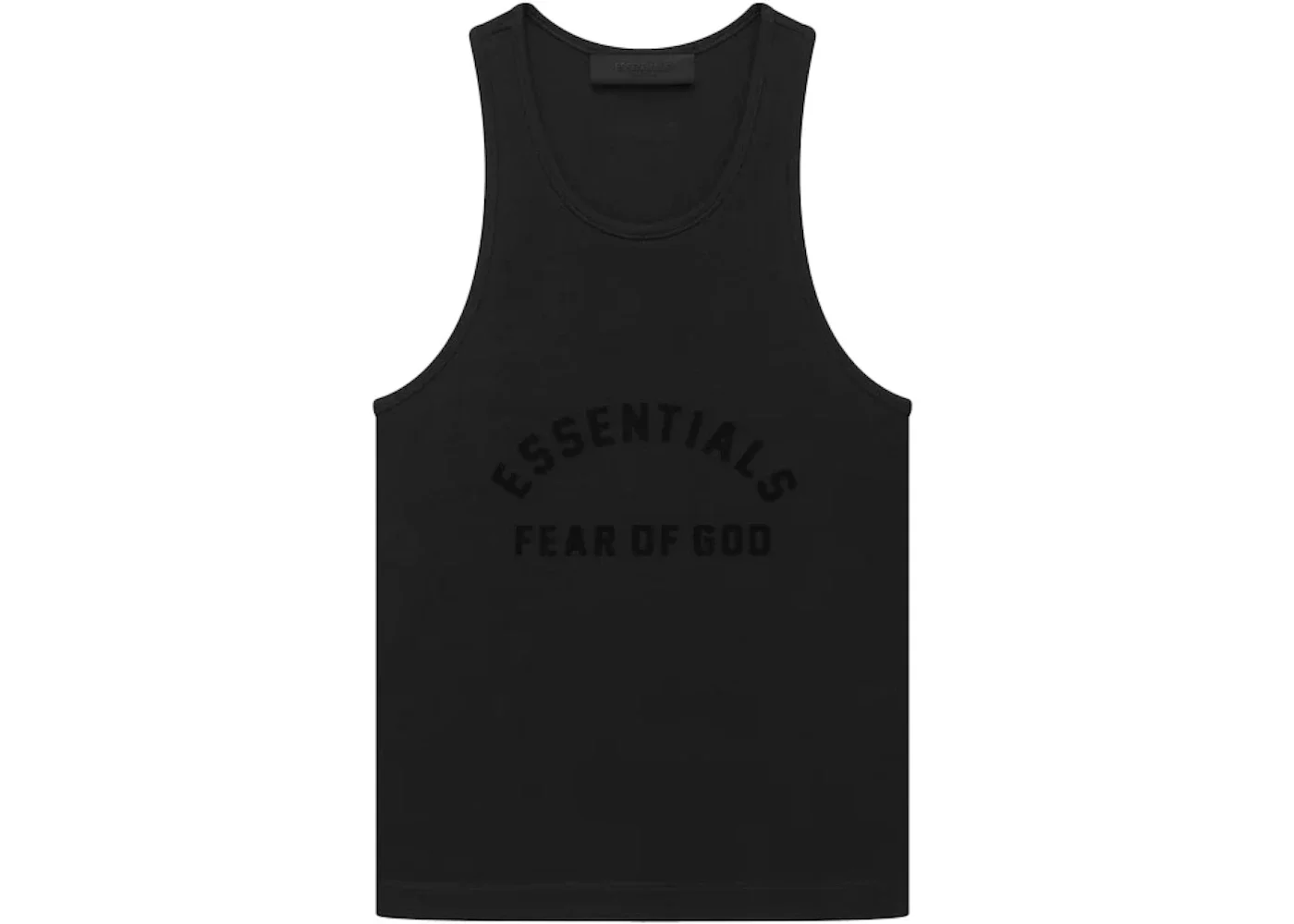 The Fear of God Essentials tanktop is made in a tri-blend jersey with the rayon giving a silky hand-feel. The curved Essentials Fear of God logo is vintage-inspired but updated in a rubberized soft-touch applique. Rib-knit scoop neck and armholes with a split bottom hem frame the piece. A new Fear of God rubberized label is stitched at the back. - Season SS23 - Color Black - Release Date 2023-06-07 - Retail Price 35 - Featured false - Uploaded By LL