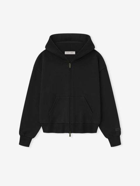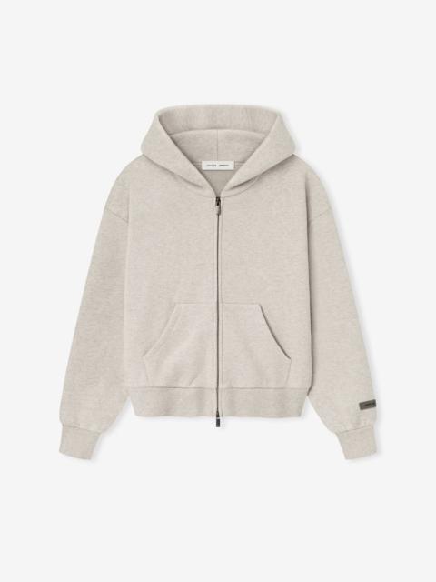 The Womens Classic Hoodie is crafted from 380gsm core fleece, which offers both body and structure to a relaxed silhouette with a cropped length. A new beveled metallic "Essentials Fear of God" logo is prominently displayed on the back. Additional details include kangaroo pocket, rib-knit cuffs and waist hem. A "Fear of God Essentials" rubberized label is stitched onto the hood and sleeve. DETAILS - 80% cotton / 20% polyester fleece, 480GSM - Model is 5'11" and wears size Small in Homestead Heather - Womens Essentials fit - relaxed, cropped fit - "Essentials Fear of God" beveled metallic logo - Overlapped neckline hoodie - Rib-knit cuffs, waist hem - "Fear of God Essentials" translucent rubberized label - Imported