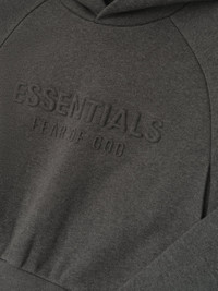 The 90s Raglan Hoodie is crafted from heavy fleece, offering both structure and comfort. Designed in an oversized, ’90s-inspired silhouette with exaggerated proportions and a cropped length, it is finished with an embossed “Essentials Fear of God” logo across the front. Additional details include a double-layer hood, side pockets, rib-knit cuffs and hem, and a Fear of God Essentials rubberized label stitched to the hood. DETAILS - 80% cotton / 20% polyester fleece, 480-gram - Model is 5'9'' and wears size Small - 90s fit -Oversized, cropped fit - "Essentials Fear of God" embossed logo - Double-layer hoodie - Rib-knit cuffs, and waist hem - Side pockets - "Fear of God Essentials" rubberized label - Imported