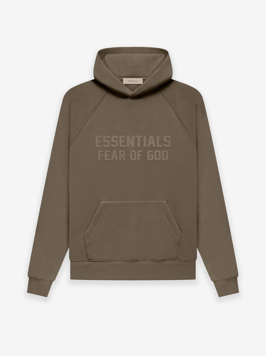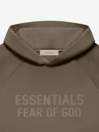 The signature fleece hoodie is detailed with an Essentials Fear of God logo in a tonal velvet flocking reminiscent of vintage athletic uniforms. A kangaroo pocket, rib-knit cuffs, and waist hem frame the piece. An Essentials rubberized label is stitched on the double-layered hood. DETAILS - Classic Essentials fit - 80% cotton / 20% polyester heavyweight fleece - Essentials Fear of God flocked logo on chest - Essentials rubberized label - Rib-knit cuffs and waist hem - Kangaroo pocket - Imported - ESSENTIALS products are currently not available for purchase or shipment to Europe including Belgium, Luxembourg, and the Netherlands.