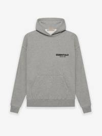 The signature Essentials hoodie is updated with a flocked logo treatment inspired by vintage athletic wear. The velvety Essentials Fear of God logo is on the left chest and across the back, while an Essentials rubberized label is stitched on the double-layered hood. A kangaroo pocket, rib-knit cuffs, and waist hem frame the piece. DETAILS - Classic Essentials fit - 80% cotton / 20% polyester heavyweight fleece - Essentials Fear of God flocked logo on chest - Essentials Fear of God flocked logo on back - Essentials rubberized label - Rib-knit cuffs and waist hem - Imported - ESSENTIALS products are currently not available for purchase or shipment to Europe including Belgium, Luxembourg, and the Netherlands.