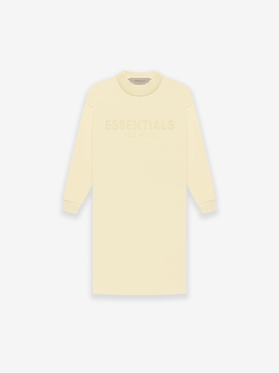 The kid's long-sleeved tee dress is designed in a cotton jersey with a relaxed fit for drape and movement. The Essentials Fear of God logo in a velvet flocking is inspired by vintage sportswear. Side seam pockets on the hip provide functionality. An Essentials rubberized label is stitched at the back collar. DETAILS - Relaxed fit - 100% cotton jersey - Essentials Fear of God flocked logo on chest - Essentials rubberized label on back - Rib-knit collar, cuffs - Side seam pockets - Imported - ESSENTIALS products are currently not available for purchase or shipment to Europe including Belgium, Luxembourg, and the Netherlands.