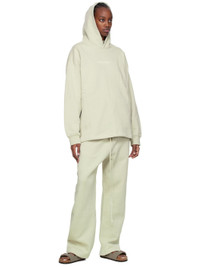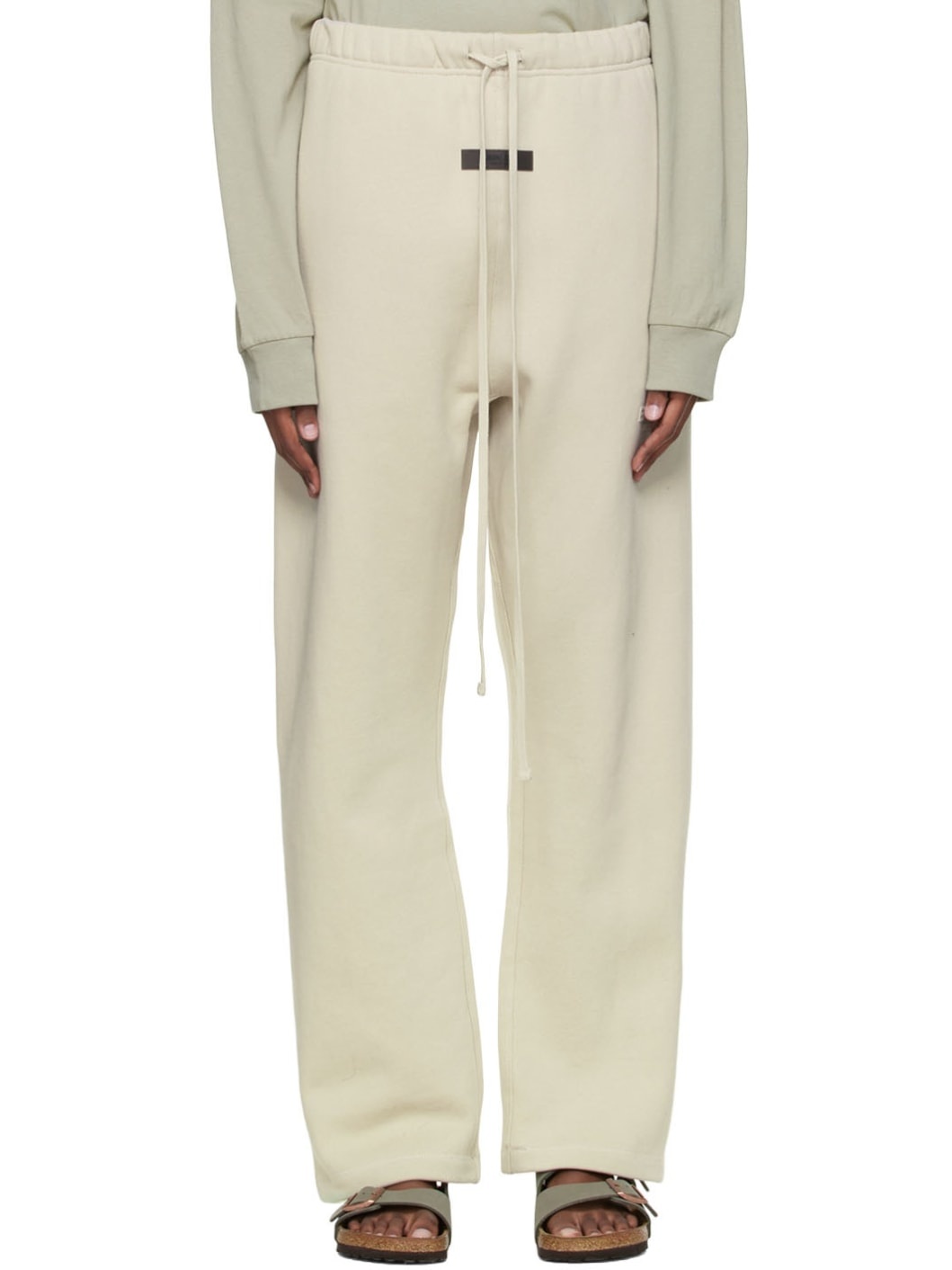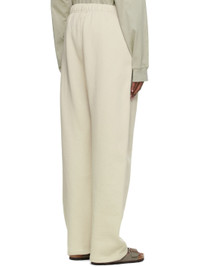 Relaxed-fit cotton-blend fleece lounge pants in beige. Logo flocked in off-white at leg. · Mid-rise · Rib knit gusset at dropped inseam · Two-pocket styling · Drawstring at elasticized waistband · Rubberized logo patch at front Please note that this item may not be shipped within the EU. Supplier color: Wheat 80% cotton, 20% polyester.