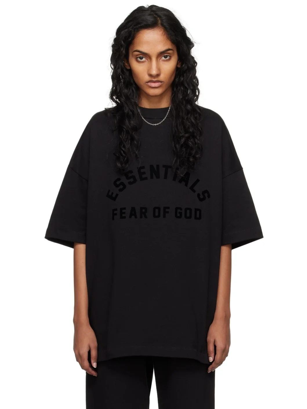 Heavyweight cotton jersey T-shirt. · Rib knit crewneck · Logo bonded at front · Dropped shoulders · Rubberized logo patch at back collar Supplier color: Jet black 100% cotton. Made in Viet Nam 241161F110019