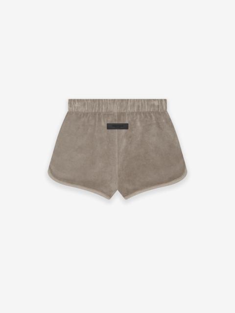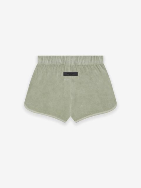 The velour beach short marks the return of the soft and comfortable style that defined 90's sportswear. Details include scalloped hem, encased elastic waistband, and an Essentials rubberized label on front. DETAILS - 70% cotton / 30% nylon Velour - Essentials rubberized label on front - Scalloped hem - Encased elastic waistband - Imported - ESSENTIALS products are currently not available for purchase or shipment to Europe including Belgium, Luxembourg, and the Netherlands.