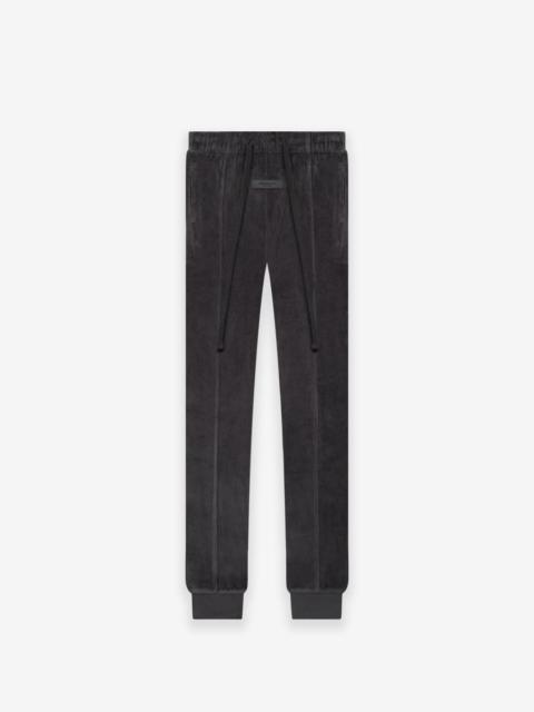 The velour pant marks the return of the soft and comfortable style that defined 90's sportswear. The modern fit is slightly relaxed in the seat and inseam and tapered. Details include side seam pockets, encased elastic waistband, rib-knit cuff, and an Essentials rubberized label on front. DETAILS - 70% Cotton / 30% Nylon Velour - Essentials rubberized label on front - Side seam pockets - Rib-knit cuff - Encased elastic waistband - Imported - ESSENTIALS products are currently not available for purchase or shipment to Europe including Belgium, Luxembourg, and the Netherlands.