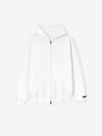 The Womens 90's Fit Zip-Up Hoodie is crafted from 380gsm core fleece, offering exceptional comfort and structure. The piece features a 90s fit with oversized proportions to highlight drape. A collegiate-inspired Fear of God State satin twill lettering is stitched on the back. Additional details include a double-layer hoodie, full-zip front, side pockets, and elasticized piping on the cuffs and waist hem. A Fear of God Essentials label is stitched on the hood and sleeve. DETAILS - 80% cotton / 20% polyester fleece, 380-gram - MODEL IS 5'10" AND WEARS SIZE SMALL IN BRIGHT WHITE - Essentials 90s fit - voluminous, cropped fit - Fear of God State satin twill lettering - Double-layer hoodie - Full zip front - Elasticized piping on cuffs, and waist hem - Side pockets - "Fear of God Essentials" translucent rubberized label - Imported